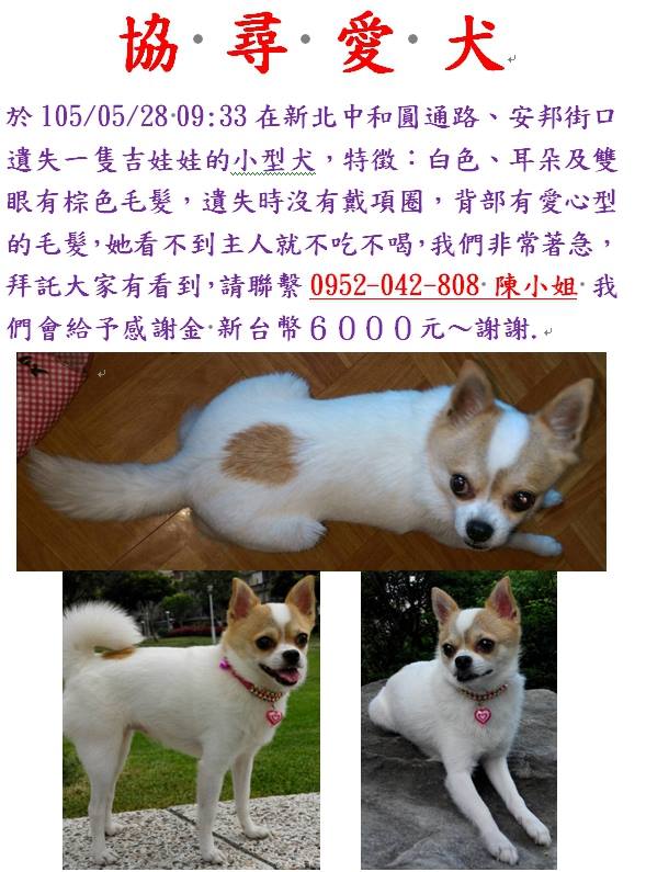協尋獎金 6000 元 尋找吉娃娃~ 地點 新北市中和區圓通路 New Taipei, Zhonghe, Chihuahua 日期: 6月 02, 2016 取得連結 Facebook X Pinterest 以電子郵件傳送 其他應用程式 【協尋獎金 6000 元 尋找吉娃娃~ 地點 新北市中和區圓通路】 轉貼內容 聯絡電話 0952042808 留言