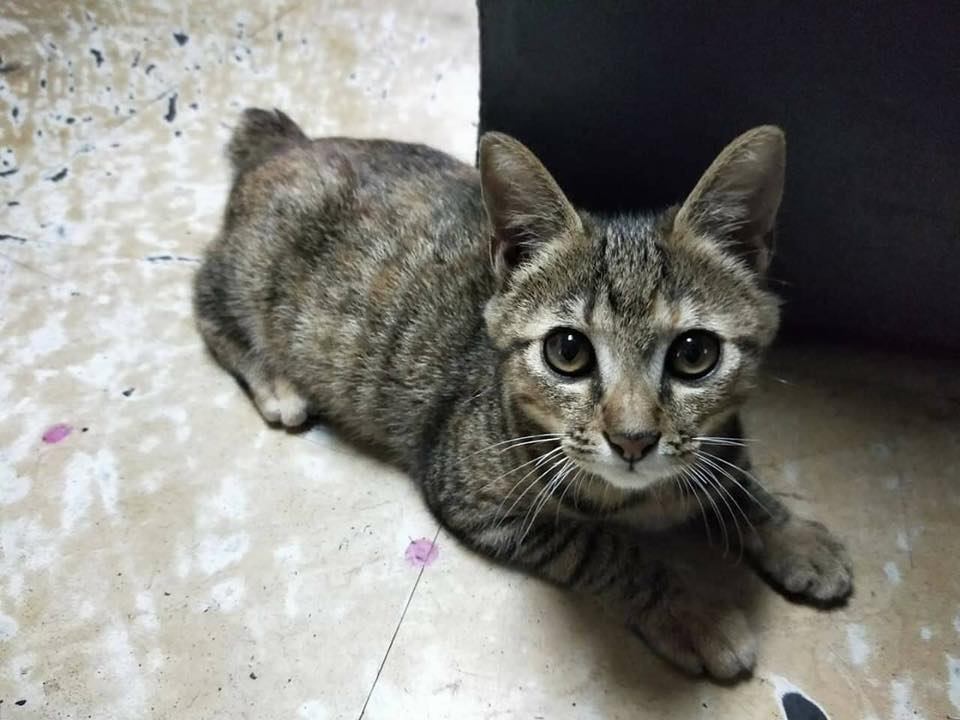 特徵是麒麟尾、虎紋、從小營養不良所以體型長不太大比一般貓咪看起來小